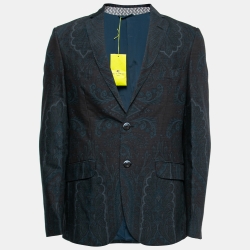 Etro Navy Blue Paisley Printed Wool Single Breasted Blazer L