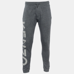 Kenzo Grey Cotton Logo Printed Sweatpants M