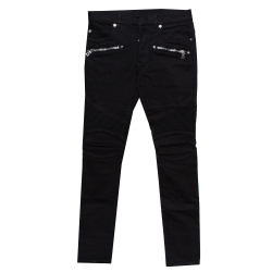 Balmain Black Denim Logo Embroidered Biker Jeans S