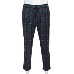 Gucci Green Tartan Check Wool Bee Motif Cropped Trousers S
