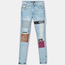Amiri Blue Denim Contrast Patch Detail Distressed Skinny Jeans XS