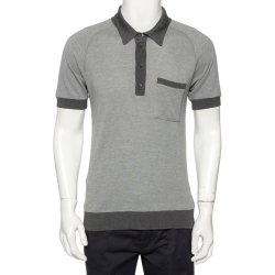 Dolce and Gabbana Men's Grey Dark Denim Contrast Polo Shirt XXL