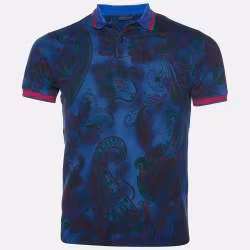 Etro Dark Blue Paisley Print Cotton Pique Polo T-Shirt M