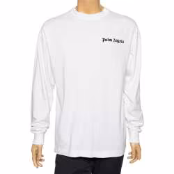 Palm Angels White Cotton Logo Printed Detail Long Sleeve Crewneck T-Shirt L