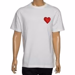Palm Angels White Cotton Heart Embroidered Crew Neck T-Shirt L