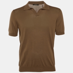Tagliatore Brown Cotton Knit Polo T-Shirt L