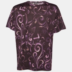 Versace Burgundy Printed Cotton Knit T-Shirt XL