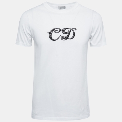 Dior White Logo Embroidered Cotton Crew Neck Half SleeveT-Shirt S