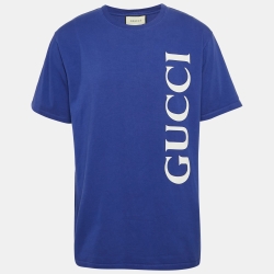 Gucci Blue Logo Print Cotton Oversize T-Shirt L