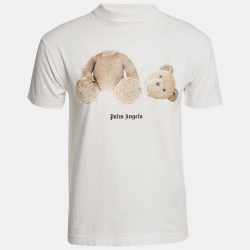 Palm Angels White Teddy Print Jersey Crewneck T-Shirt XS