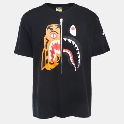 A Bathing Ape Black Print Cotton Crew Neck Half Sleeve T-Shirt XL