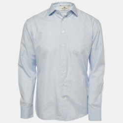 Etro Blue Paisley Patterned Cotton Button Front Full Sleeve Shirt M