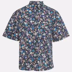 Off-White Blue Floral Print Cotton Short Sleeve Shirt M
