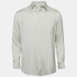 Saint Laurent White Pinstripe Silk Eve Kara Classic Shirt M