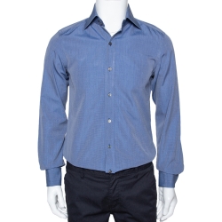 Tom Ford Blue Textured Houndstooth Checked Cotton Button Front Shirt M