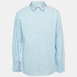 Valentino Blue Rockstead Embellished Cotton Shirt XL