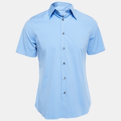 Prada Blue Cotton Button Front Half Sleeve Shirt M