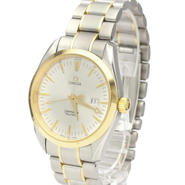 Pre Owned Omega Silver 18K Yellow Gold And Stainless Steel Seamaster Aqua Terra 2317.30 Men's Wristwatch 39 MM