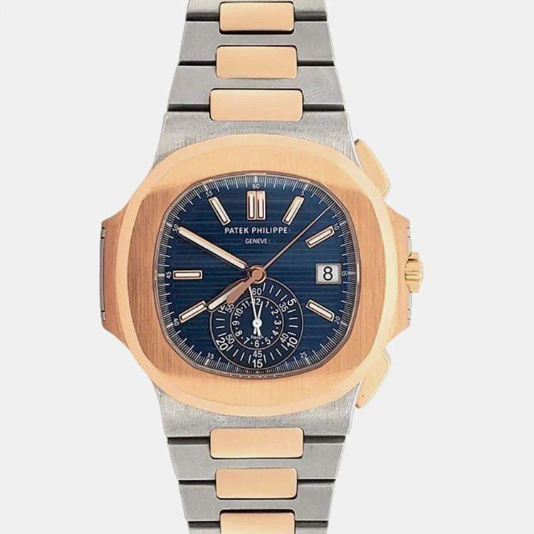 Pre Owned Patek Philippe Nautilus Chronograph 5980/1AR-001 Automatic Blue Dial 2-Tone Men's Wristwatch 40 mm