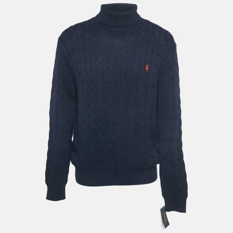 Polo Ralph Lauren Navy Blue Cable Knit Turtle Neck Sweater XL