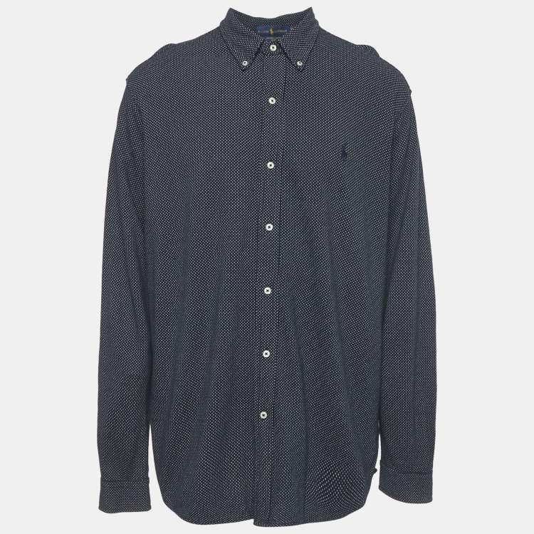 Pre Owned Ralph Lauren Navy Blue Dotted Cotton Feather Light Mesh Shirt XXL