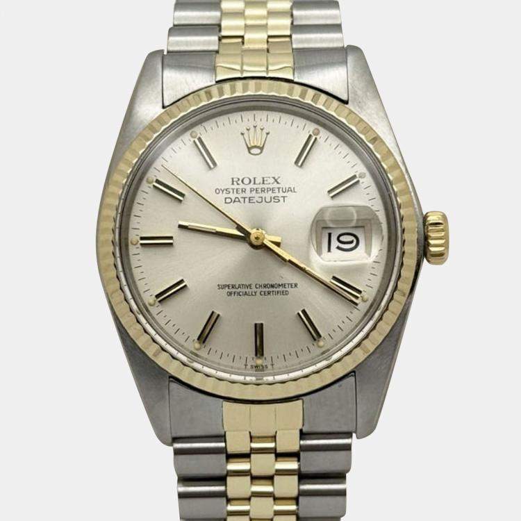 Pre Owned Rolex Datejust  Automatic 16013 Silver Dial 14k Yellow Gold Stainless Steel Men's Wristwatch 36mm