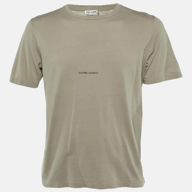 Saint Laurent Paris Olive Green Logo Printed Cotton Crew Neck T-Shirt S