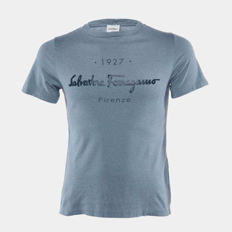 Pre Owned Salvatore Ferragamo Blue Logo Cotton Crewneck T-Shirt M