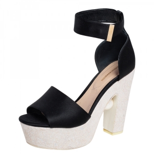 Nicholas Kirkwood Metallic Gold Glitter Fabric Pearl Embellished Platform Slingback Sandals Size 39