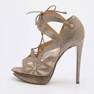 Nicholas Kirkwood Grey/Silver Python and Leather Platform Slingback Sandals Size 37.5