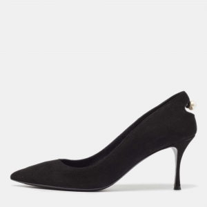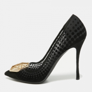 Nicholas Kirkwood Black/Beige Suede and Lace Pearl Embellished Pointed Toe Pumps Size 41