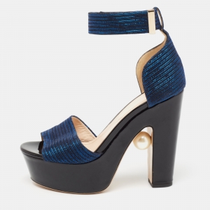 Nicholas Kirkwood Black Satin Peep-Toe Faux Pearl Embellished Platform Slingback Sandals Size 37