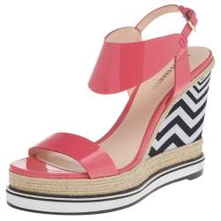 Nicholas Kirkwood Fuchsia Patent Leather Wedge Espadrille Ankle Strap Sandals Size 39