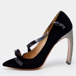 Nicholas Kirkwood Grey/White Jersey Fabric and Rubber Bow T-Strap Pumps Size 38