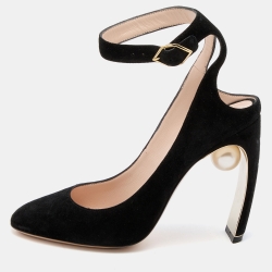 Nicholas Kirkwood Black Satin Peep-Toe Faux Pearl Embellished Platform Slingback Sandals Size 37