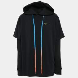Off-White Black Logo Print Cotton Knit Hoodie S