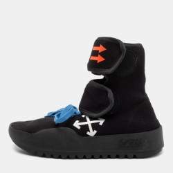 Off-White Black/White Knit Fabric Over the Knee Boots Size 39