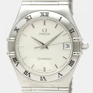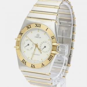 Pre Owned Omega Champagne 18K Yellow Gold And Stainless Steel Constellation Quartz 396.1070 Women's Wristwatch 33 mm