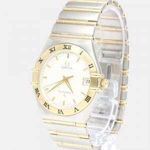 Pre Owned Omega White Shell 18k Yellow Gold And Stainless Steel Constellation 1262.70 Quartz Women's Wristwatch 22 mm