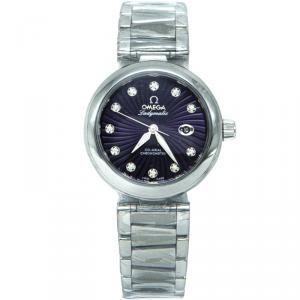 Pre Owned Omega Mother of Pearl 18K Yellow Gold and Stainless Steel Diamond Constellation Double Eagle Women's Wristwatch 24 mm