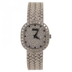 Piaget Diamond Sapphire Studded 18K White Gold Mesh Bracelet Vintage Women's Wristwatch 22MM