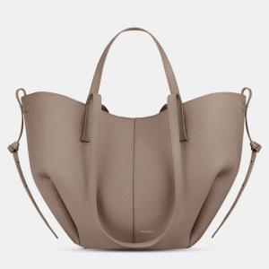 Polene Dark Beige Leather Mini Cyme Tote