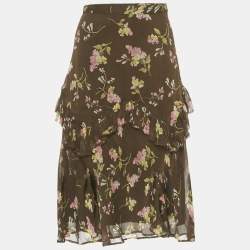 Polo Ralph Lauren Brown Floral Print Chiffon Ruffled Midi Skirt M