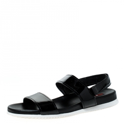 Prada Sport Black Patent Leather Wedge Sandals Size 41