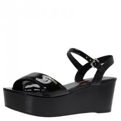 Prada Sport Black Quilted Patent Leather Tweed Check Print Bow Scrunch Ballet Flats Size 38.5