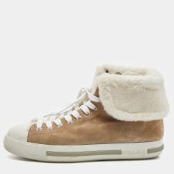 Prada Sport Navy Blue/Brown Canvas and Suede Low Top Sneakers Size 43