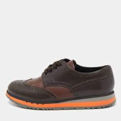 Prada Sport Brown Leather Double Velcro Low Top Sneakers Size 42