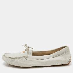Prada Beige Patent Leather Crystal Embellished Bow Pumps Size 36