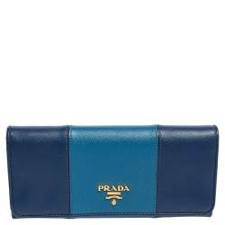 Prada Two Tone Blue Saffiano Lux Leather Pyramid Frame Satchel