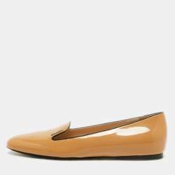 Prada Brown Leather Triangle Cutout Flat Slides Size 35.5